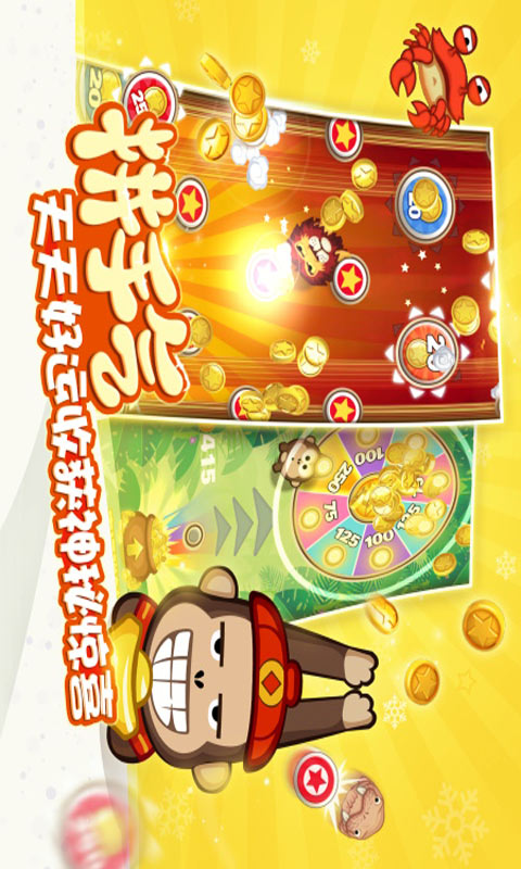 该作是网易游戏代理运营的一款通过指尖弹射使萌物不断攀升的休闲手游。指尖调整弹射力度与方向,控制萌物不断上升,同时避开障碍,以收集更多的金币。玩法轻松休闲,节奏紧张抓人。新鲜竖版弹射玩法,无尽跑酷上手简单,丰富角色收集,呆萌明亮画风,还有舒缓解压的轻幽默!摇奖娃娃机等更添策略性与可玩性!画面精美清新,以活泼可爱的猴子作为主角,在游戏中玩家需要控制猴子去完成弹射任务。Q弹的操控手感,丰富多样的关卡设置,轻松上手的同时收获紧张新奇的游戏乐趣。